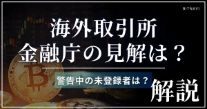 海外の仮想通貨取引所の違法性については、「仮想通貨の海外取引所は違法?メリットやデメリット・金融庁との関係も解説」を参考にしてください。