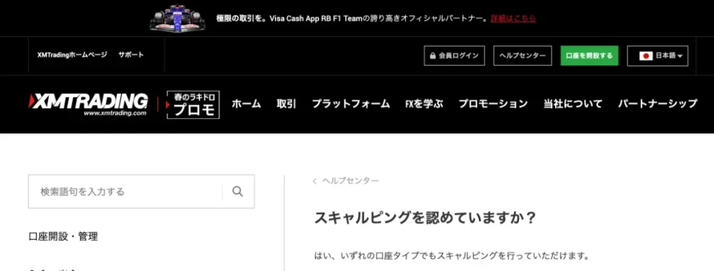 実際に以下は、海外取引所の「XMTrading」のスキャルピングの有無を記したページです。