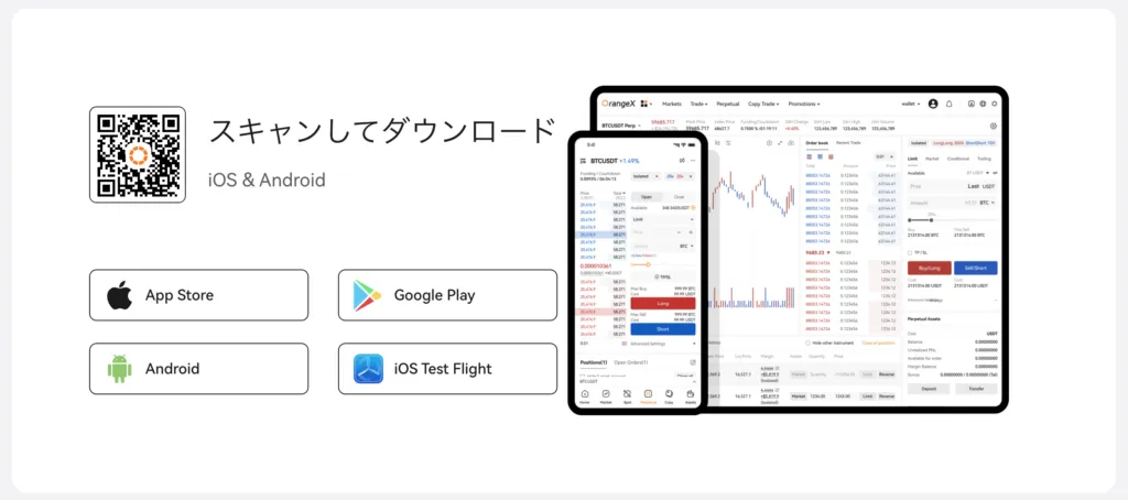 OrangeXは、スマートフォンやタブレットでも快適に取引できる充実したモバイルアプリを提供しています。