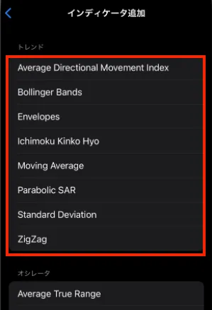 標準搭載のテクニカル指標がMT4よりも多く、初期設定のままでも高度な分析が可能です。